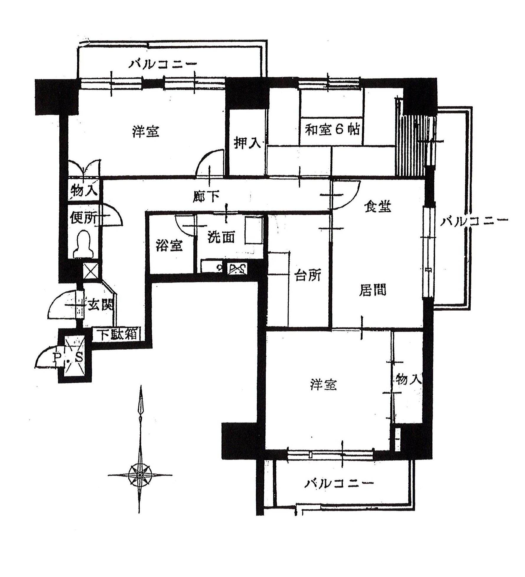 パルム5階 東南北三方角地部屋通風・採光良好!